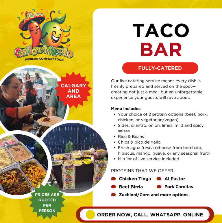 Taco Bar is our fully-catered service. We serve your guests with warm tortillas and prepare their tacos. The service is included in the price.